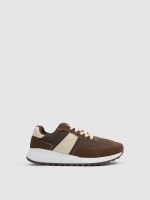 Esportiva casual combinada em tons marrons e bege. Confeccionada em tecido de nylon. Sola de borracha, ideal para combinar com seus looks diários.