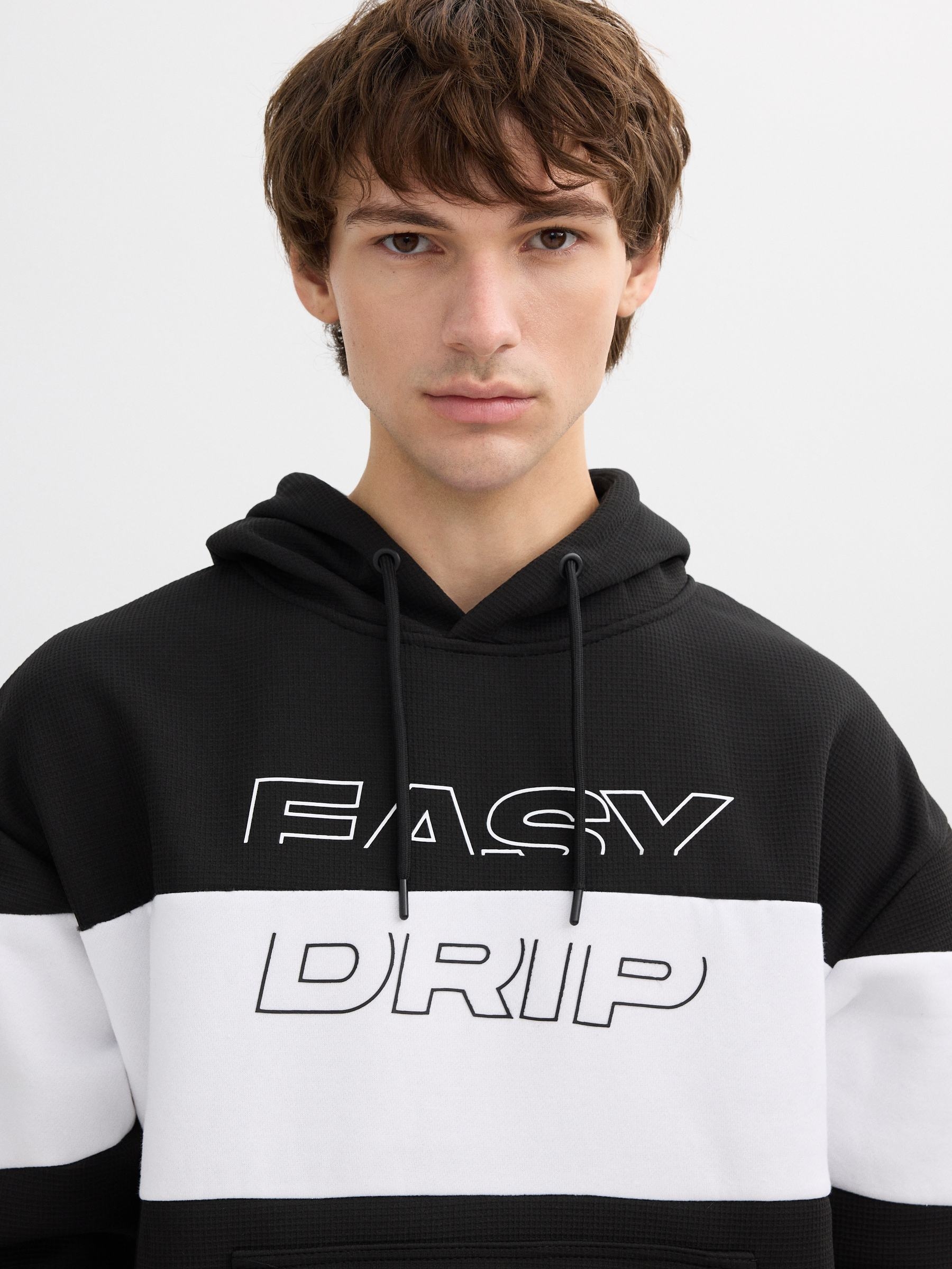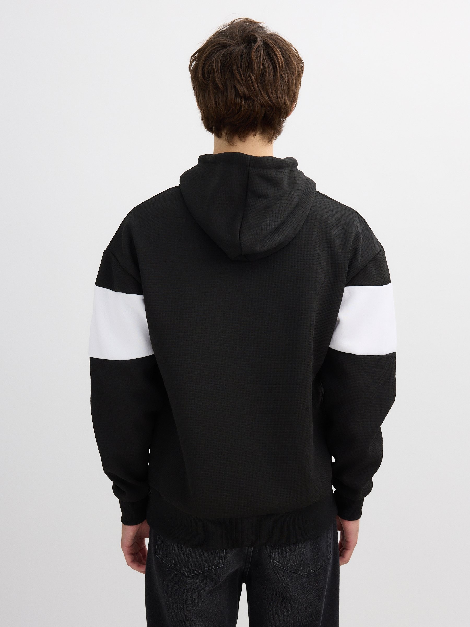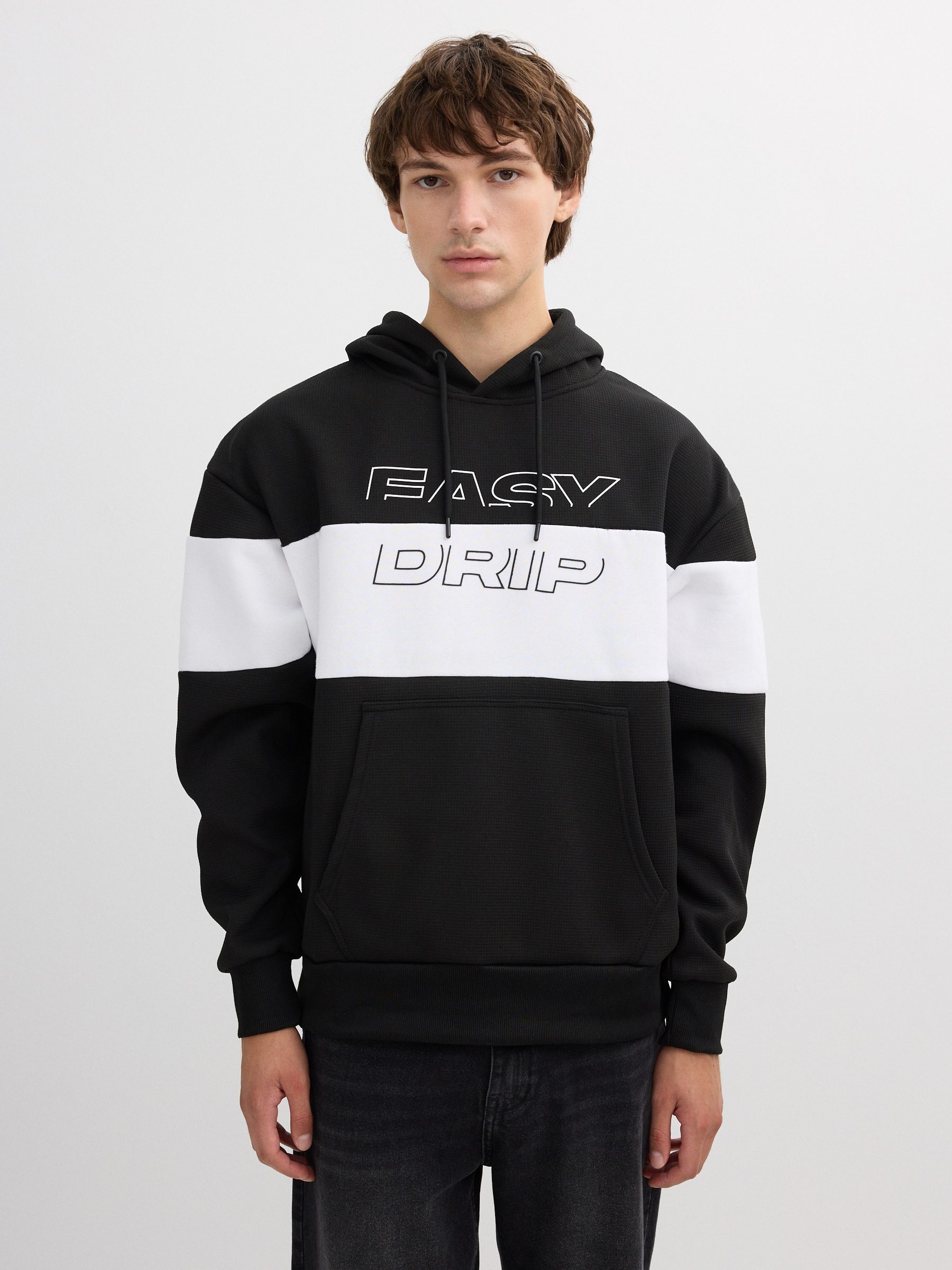 Moletom com capuz color block branco e preto