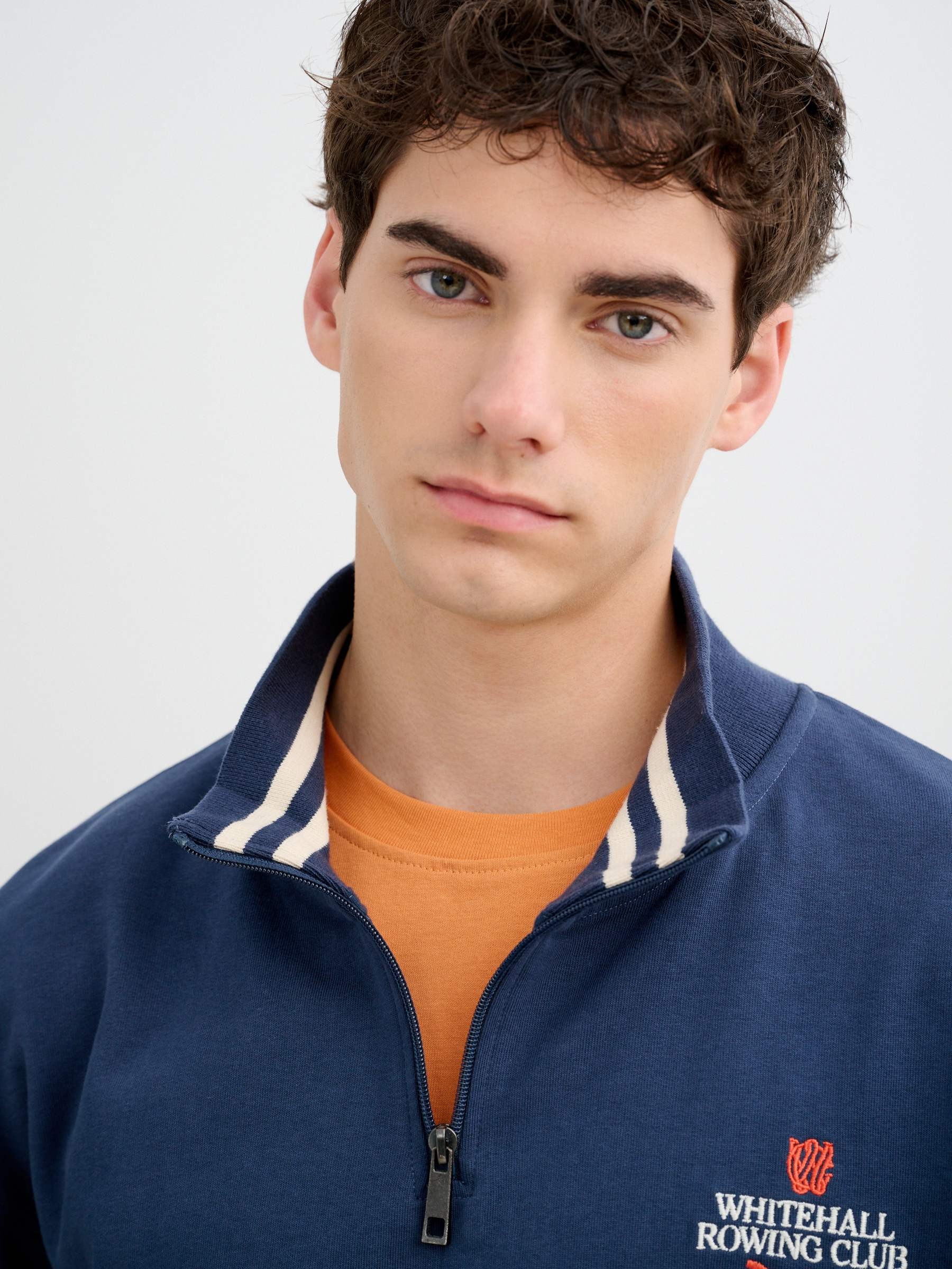 Moletom esportivo de felpa com fechamento de zíper e gola redonda. Design liso e corte oversized de 58 cm. Detalhes em efeito de couro.