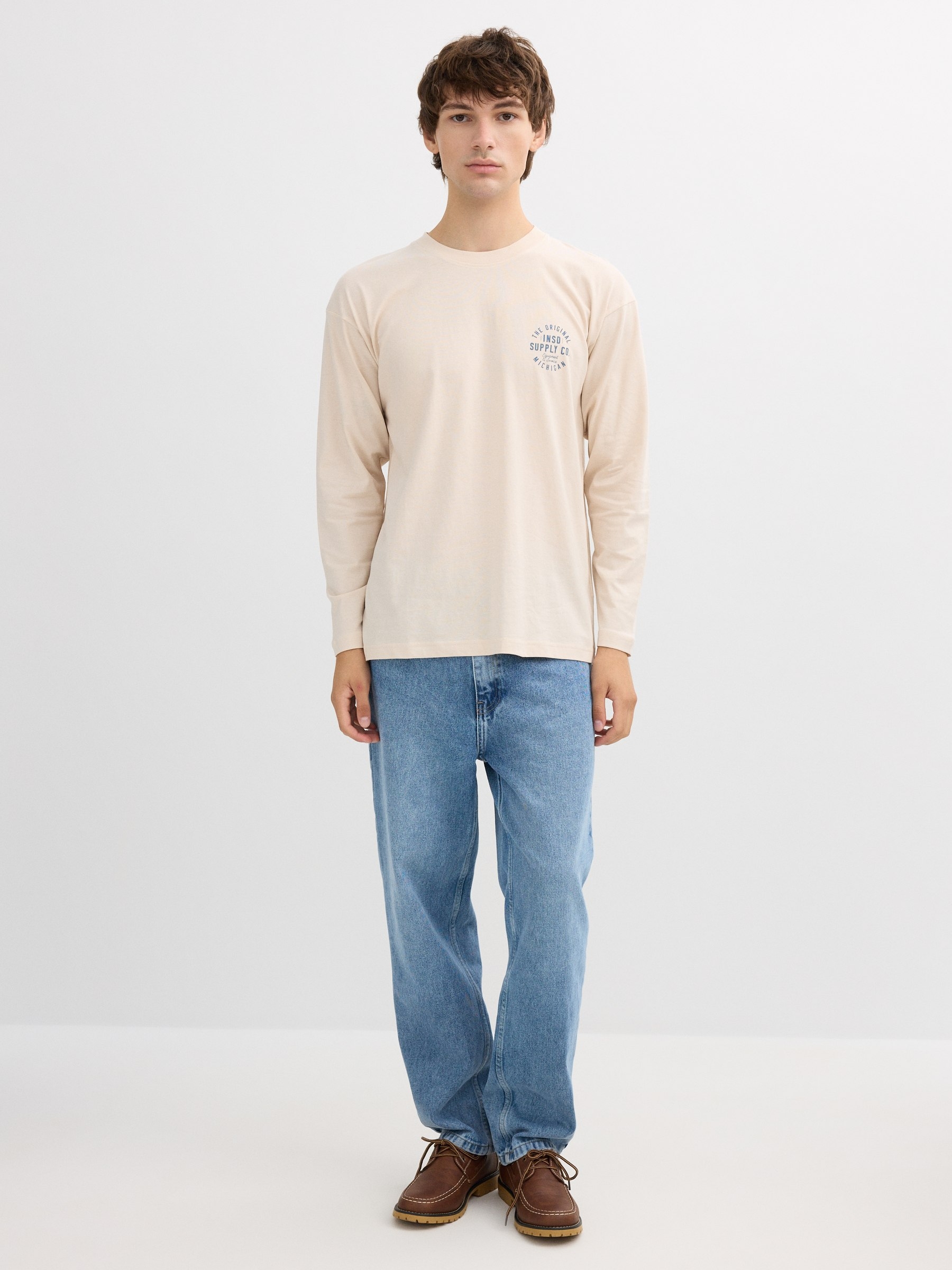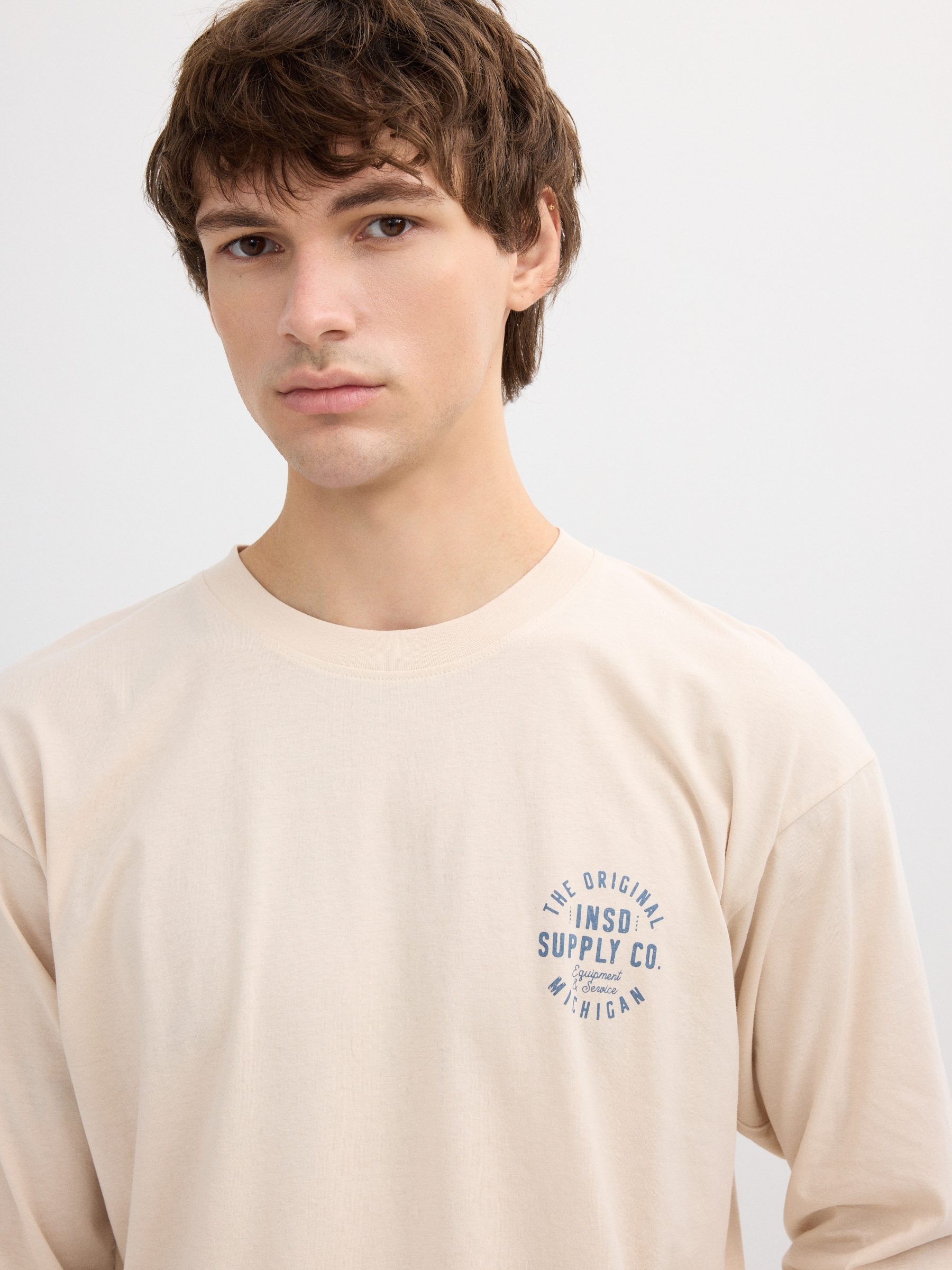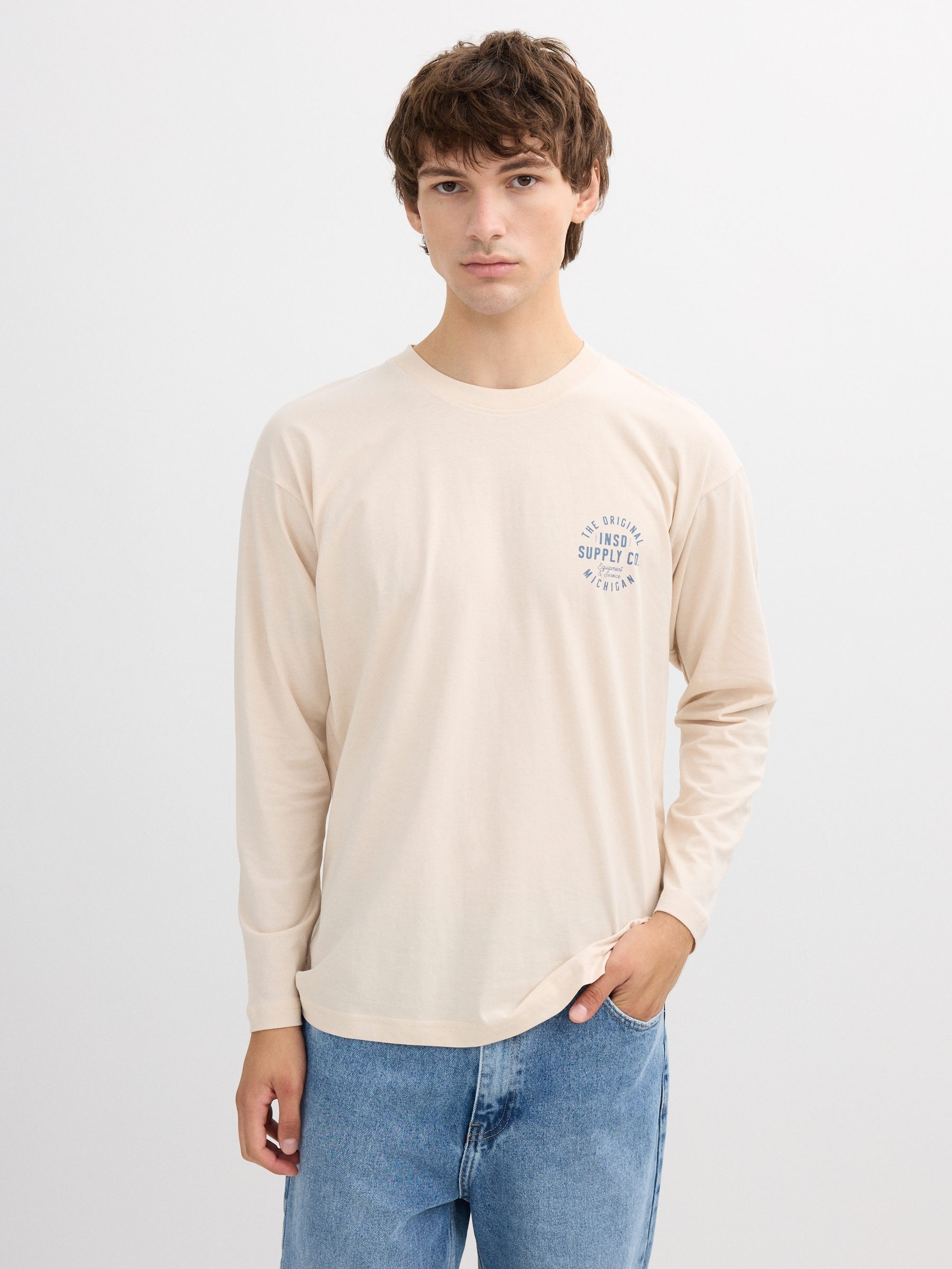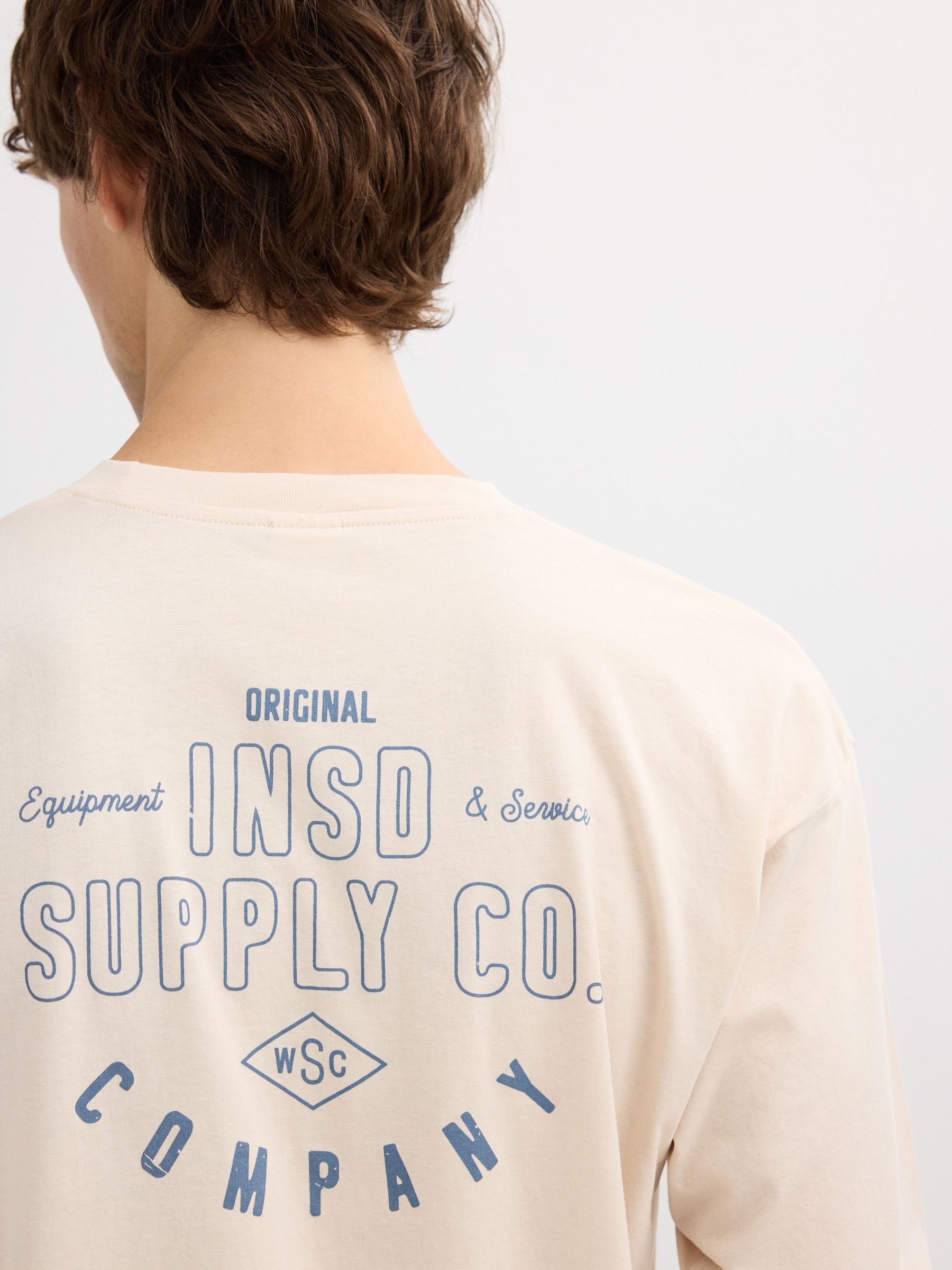 Camiseta 100% algodão de manga longa e gola redonda. Design frontal e traseiro com estampa. Corte oversize.