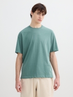 Camiseta lisa de manga curta com gola redonda e tecido single jersey.