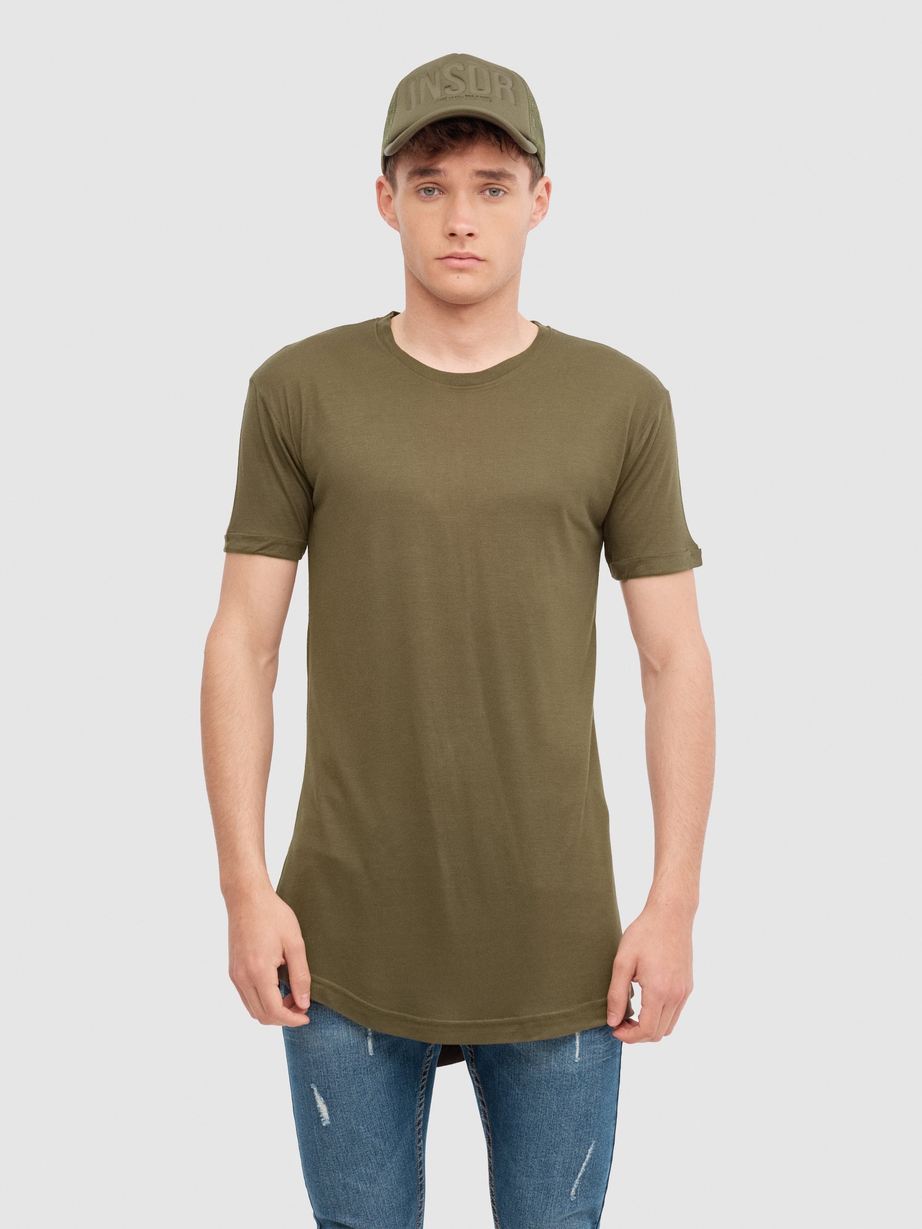 Camiseta longa com design básico e manga curta. Barra arredondada nas costas. Gola redonda.