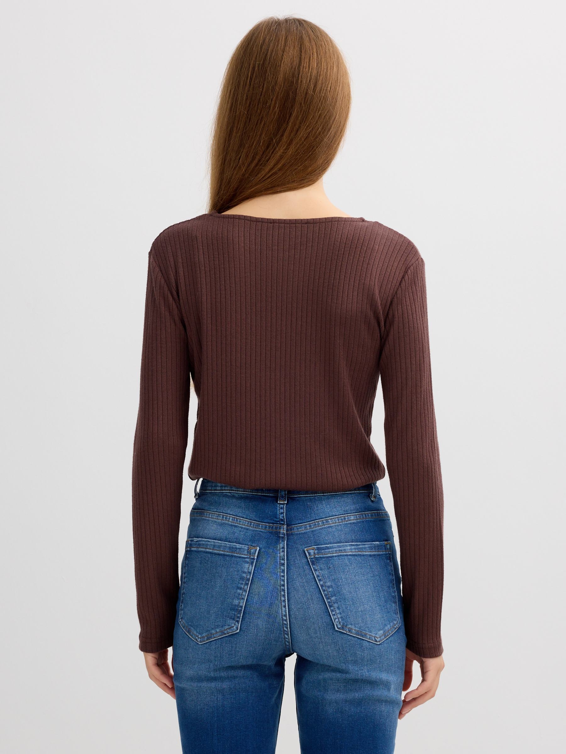 Camisola de manga comprida confecionada em tecido canelado. De corte ajustado.