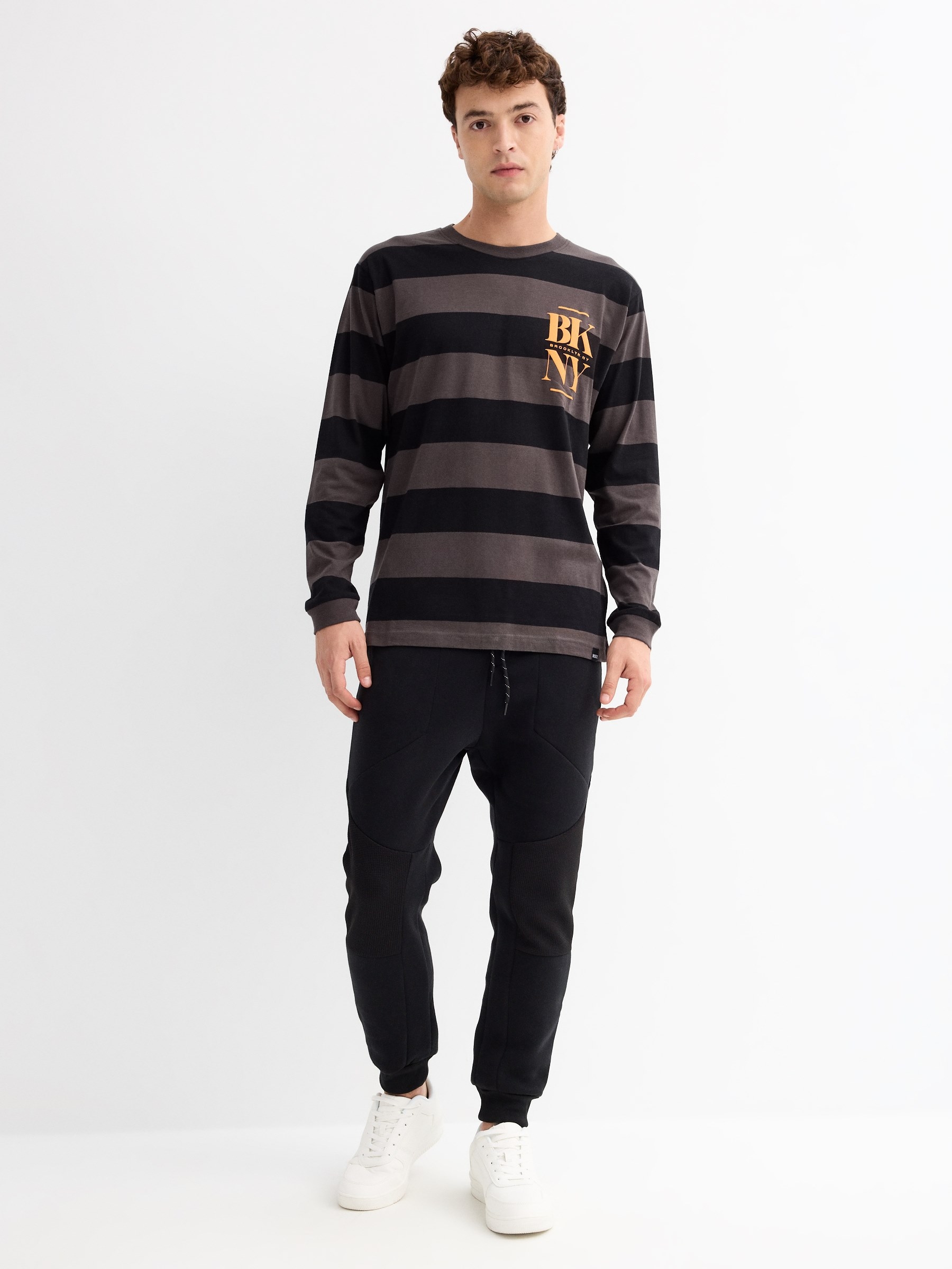 Essa t-shirt estampada com listras é perfeita para jovens que querem um estilo casual e moderno. Com manga comprida e colarinho redondo, ela é ideal para dias mais frescos. Feita com material de alta qualidade, a t-shirt garante conforto e durabilidade. Combine com jeans ou calças de sarja para um look despojado.