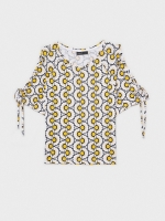 T-shirt estampada com lacinhos em mangas