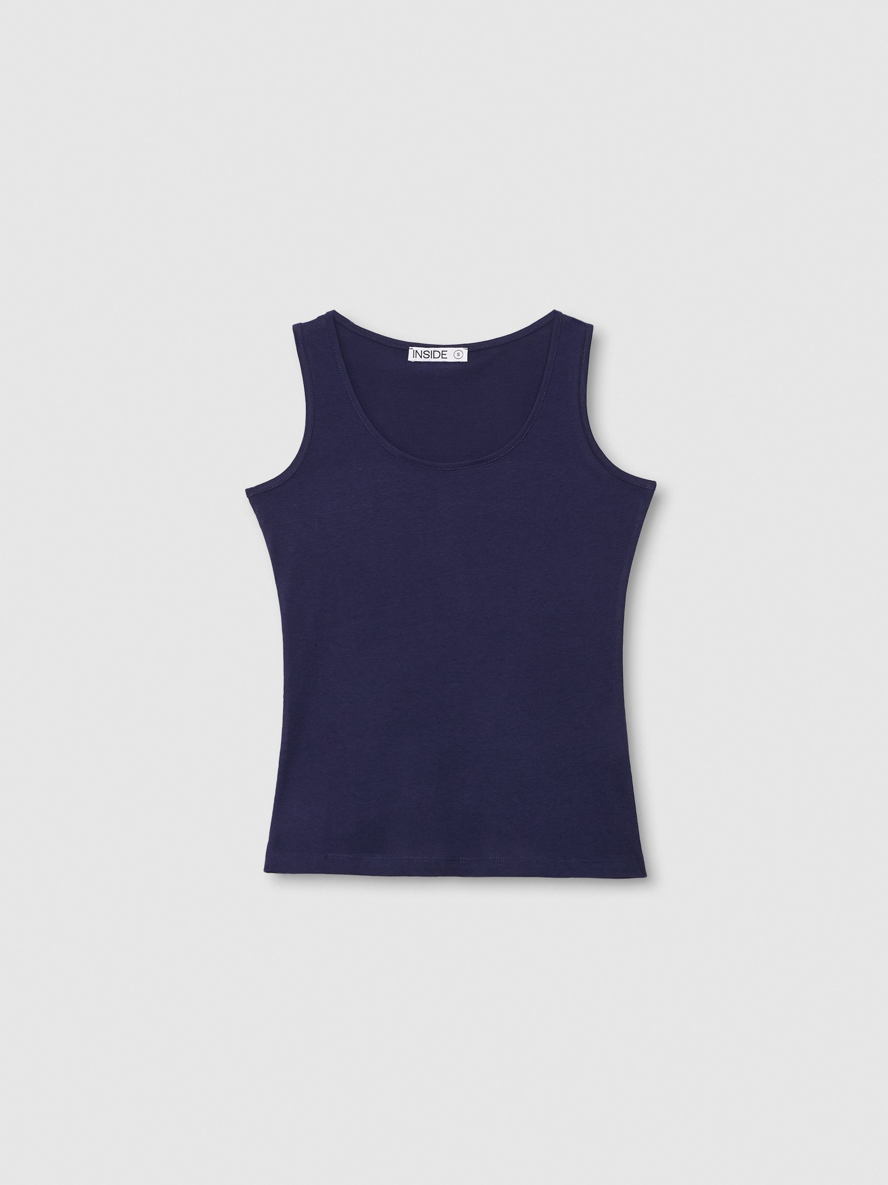- Basic tank top with rounded hem. Round neck. Available in various colors.